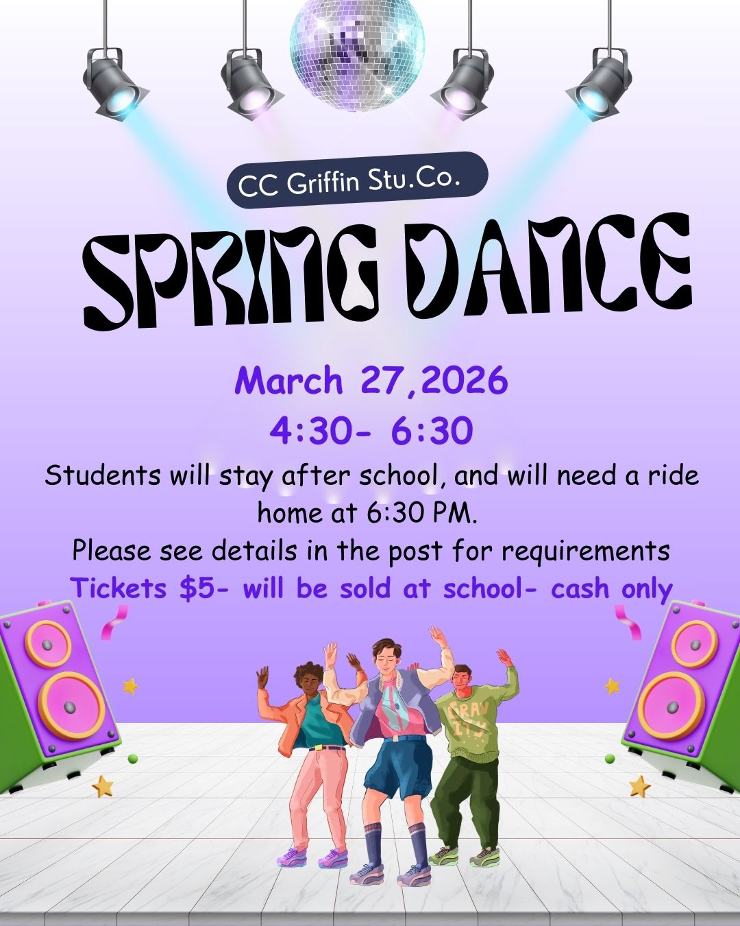 The Spring Dance is right around the corner! CCG Student Council is sponsoring a spring dance for all grade levels. It will be held on Friday, March 27th. Students will stay after school for the da...